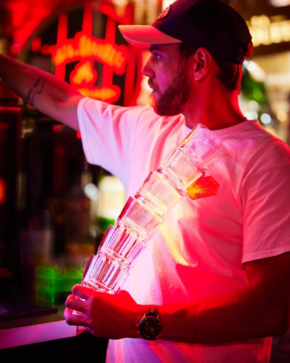 Verticale lijnen vangen licht op en verspreiden het, waardoor cocktails en drankjes beter tot hun recht komen. De vierkante basis zorgt voor optimale stabiliteit, zelfs tijdens de drukste diensten.