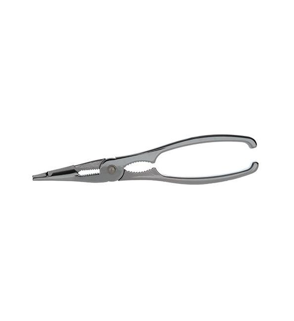 Breek moeiteloos de hardste schalen met deze unieke tang. De tang is voorzien van een robuust design en past bij elk schaaldierenfestijn. Gebruiksaanwijzing: plaats de tang op de schaar of staart van het schaaldier en druk de tang langzaam dicht tot het pantser breekt. Haal de lekkernij eruit met een kreeftenvorkje. Smakelijk!